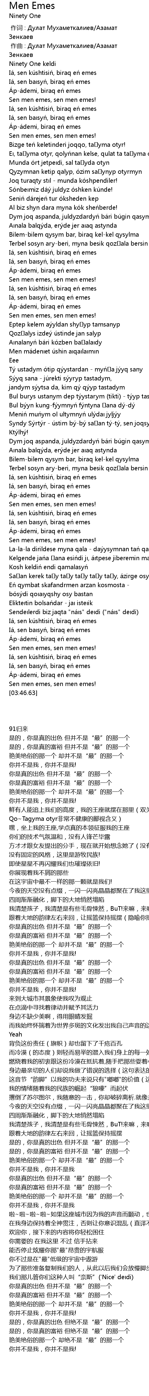 | [03:38.43] | Iá, sen baısyń, biraq eń emes |