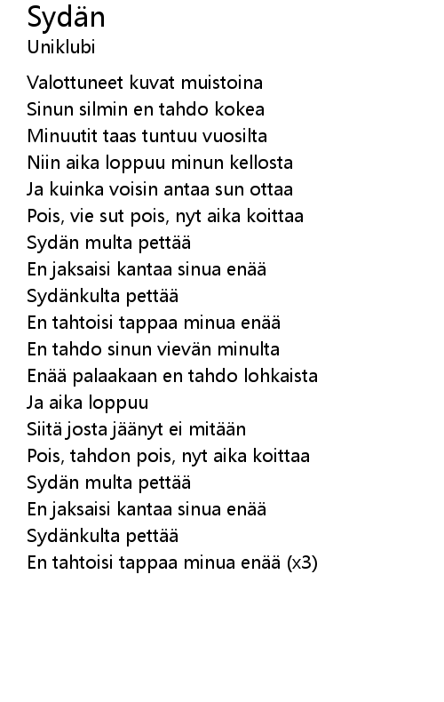 | 歌曲 | Sydän |