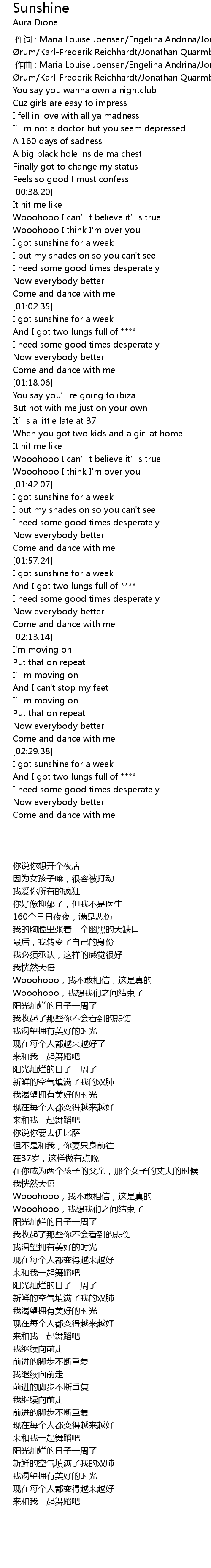 | 歌曲 | Sunshine |