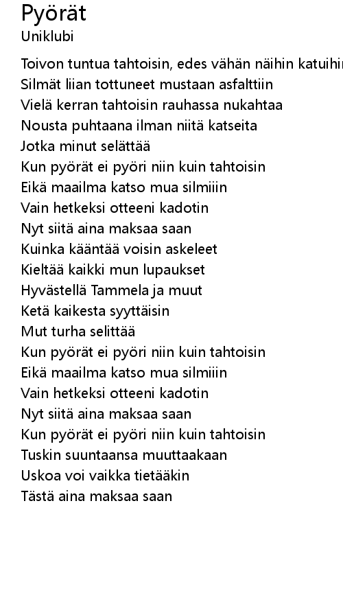 | 歌曲 | Pyörät |