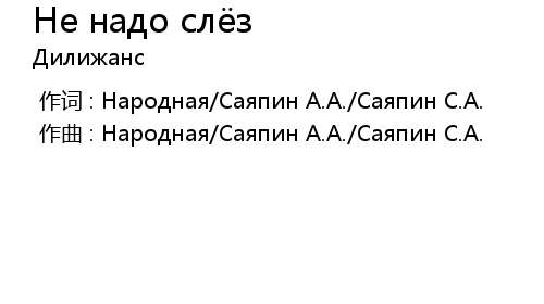 | 歌曲 | Не надо слёз |