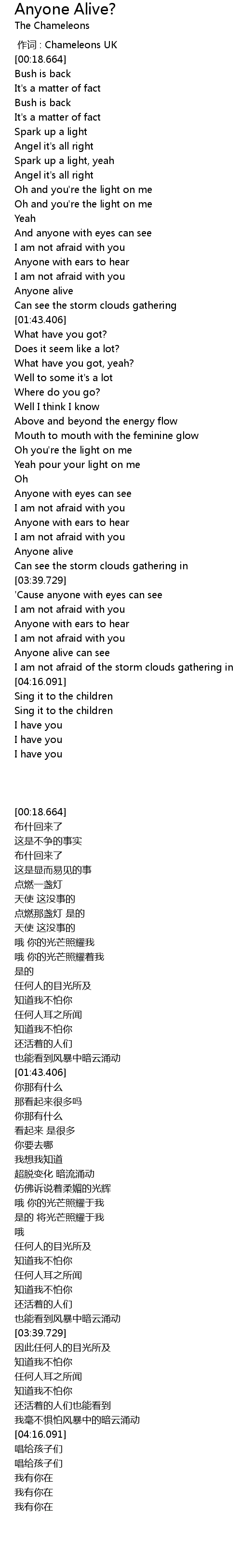 | [00:00.000] | 作词 : Chameleons UK |