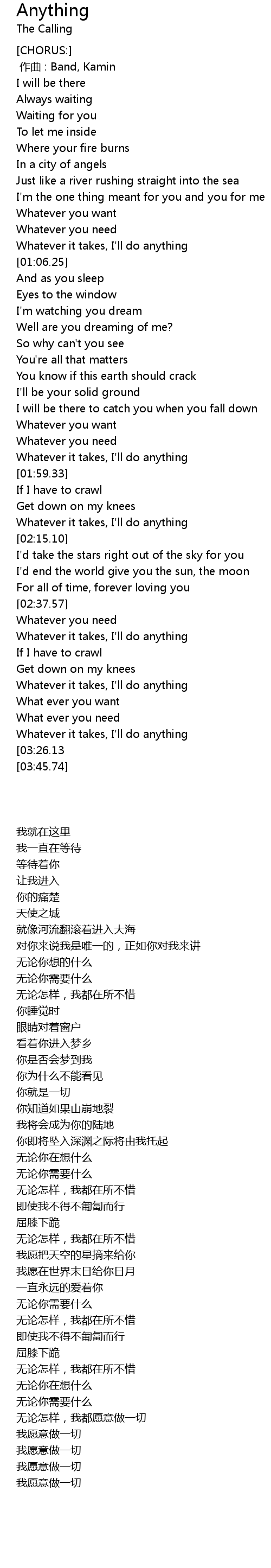 | [02:56.79] | Whatever it takes, I' ll do anything |