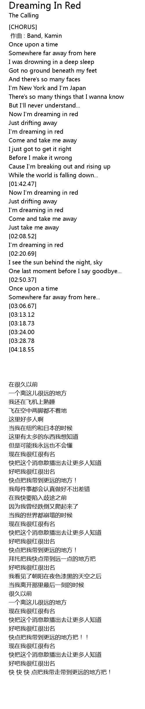 | [01:45.49] | Now I' m dreaming in red |