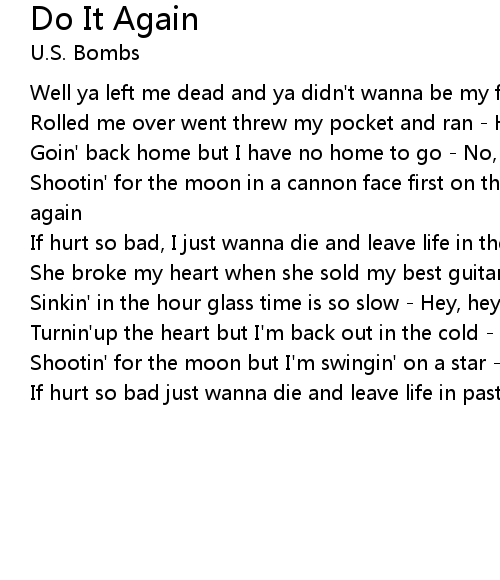 Shootin' for the moon in a cannon face first on the floor - Yeah , yeah do it again |