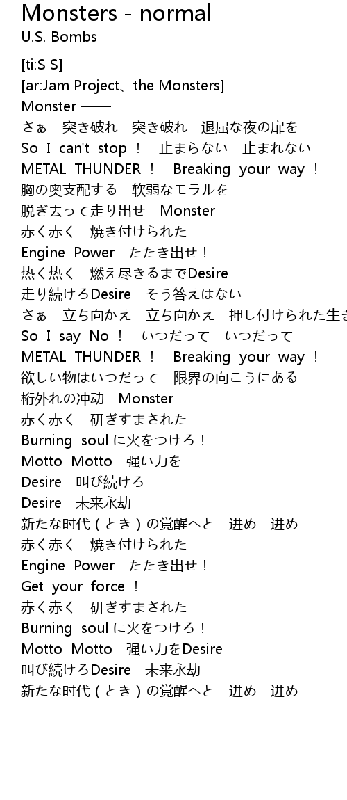 | [01:16.926] | 脱ぎ去って走り出せ Monster |