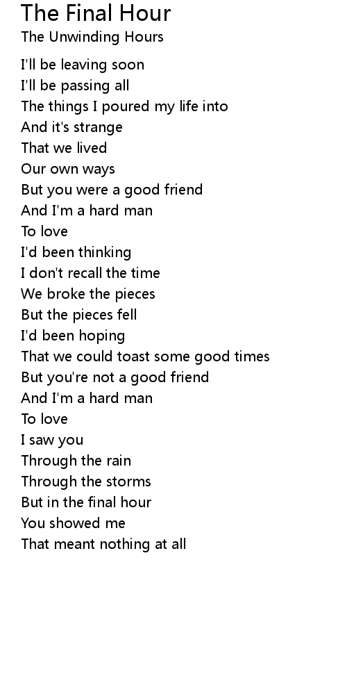 | 歌曲 | The Final Hour |