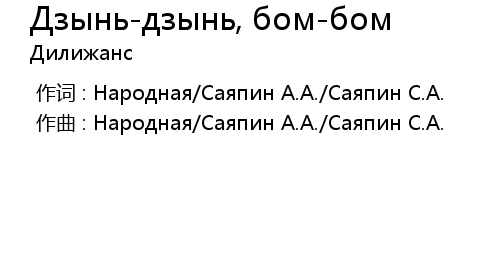 | 歌曲 | Дзынь-дзынь, бом-бом |