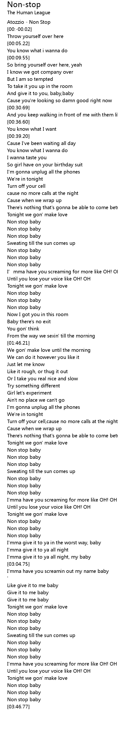 | [03:24.77] | Non stop baby |