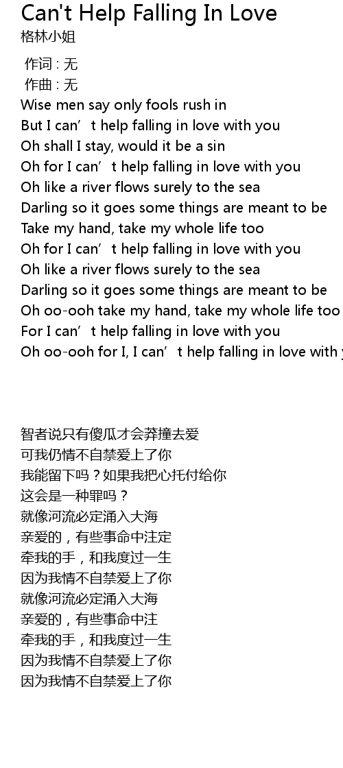 | [00:47.068] | Oh for I can' t help falling in love with you |