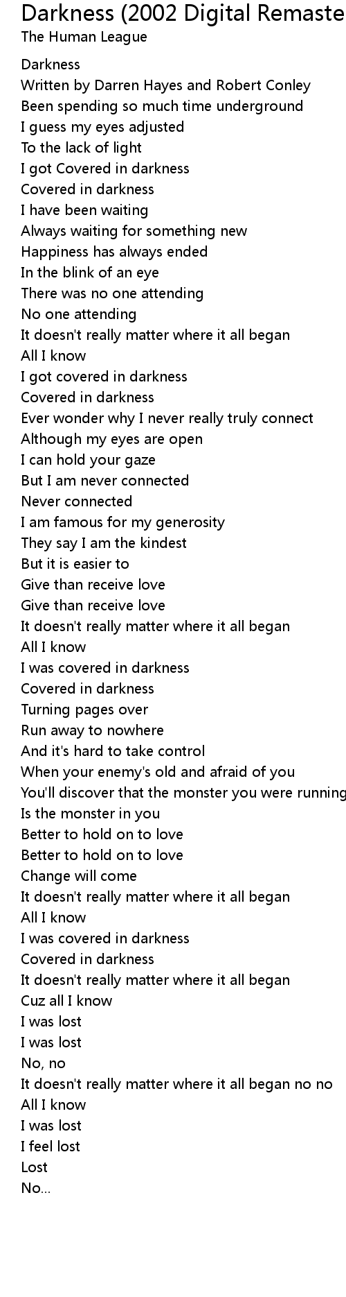 I got Covered in darkness |