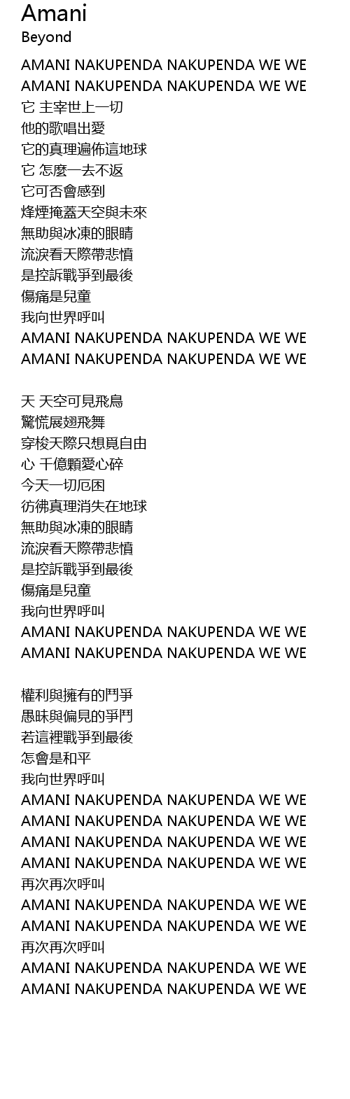 | AMANI NAKUPENDA NAKUPENDA WE WE | |