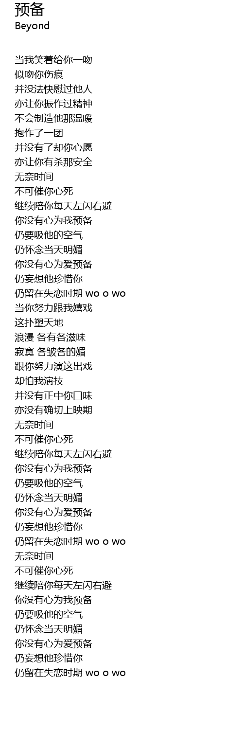 | [03:15.200] | nǐ méi yǒu xīn wèi wǒ yù bèi |