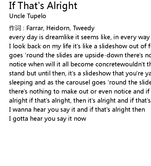| 作词 : Farrar, Heidorn, Tweedy | |