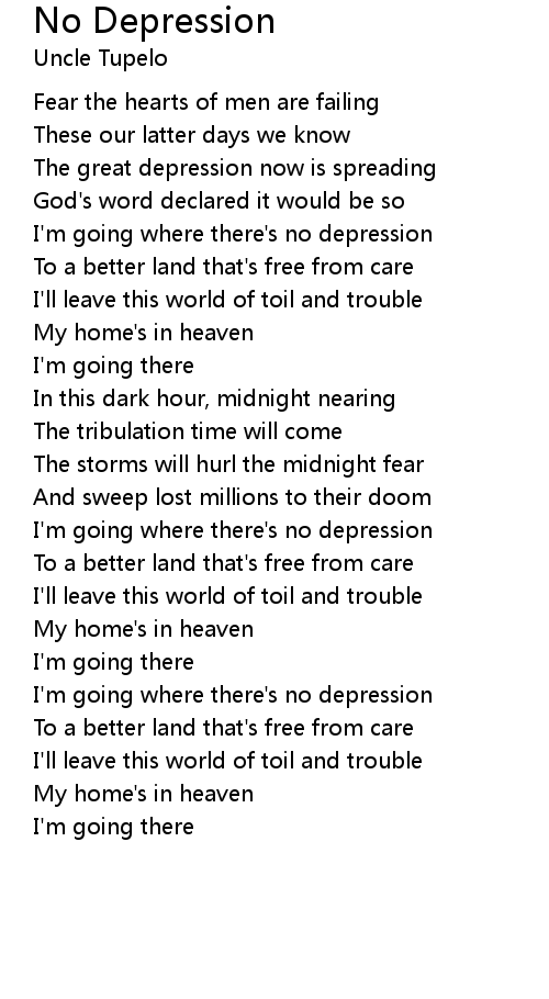 I'm going where there's no depression |