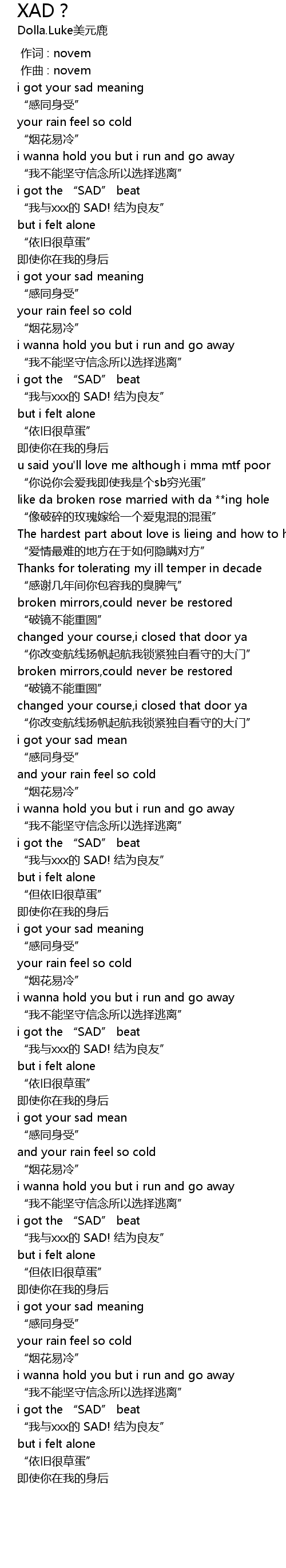 | [01:46.692] | i got the " SAD" beat |