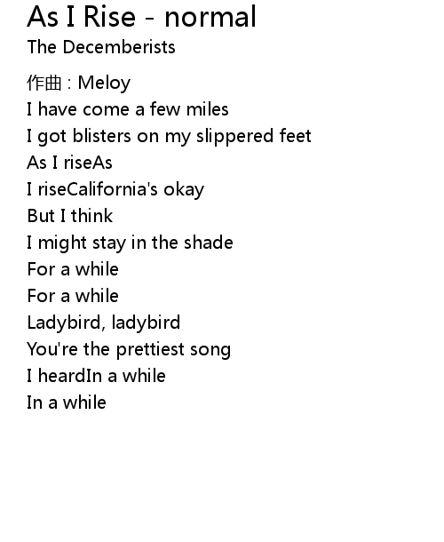 | 歌曲 | As I Rise - normal |