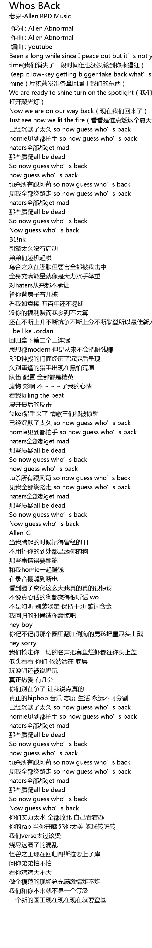 [02:16.371] homie jian dao dou pai shou so now guess who' s back