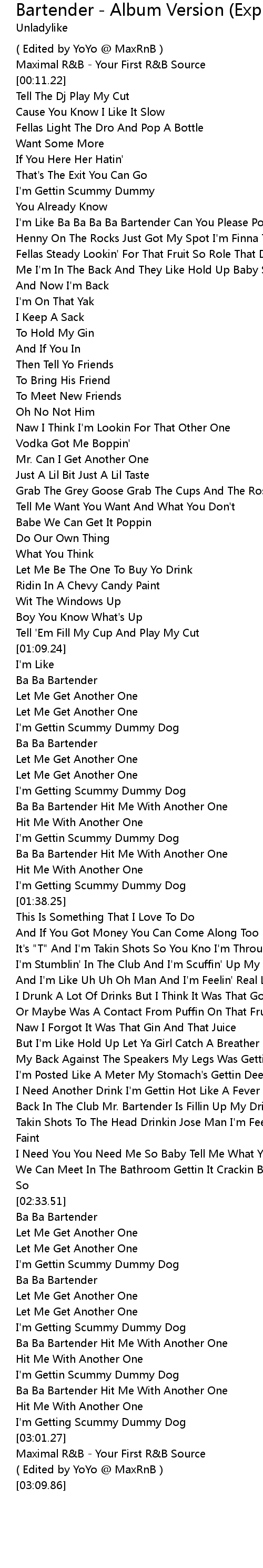 I'm Like Ba Ba Ba Ba Bartender Can You Please Pour It Up |