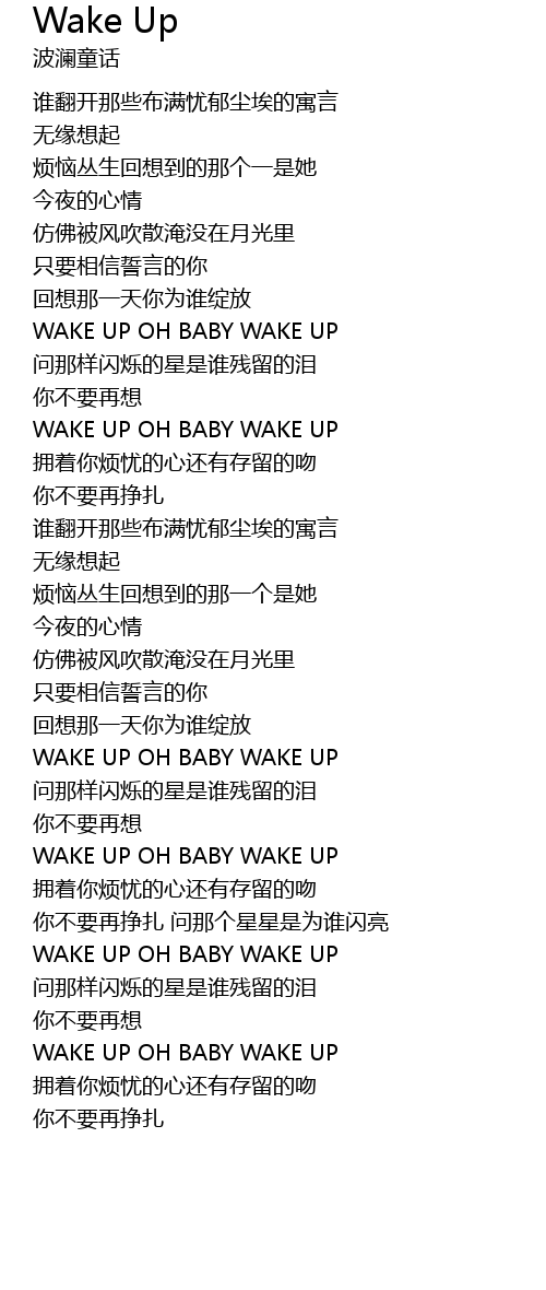 | WAKE UP OH BABY WAKE UP | |