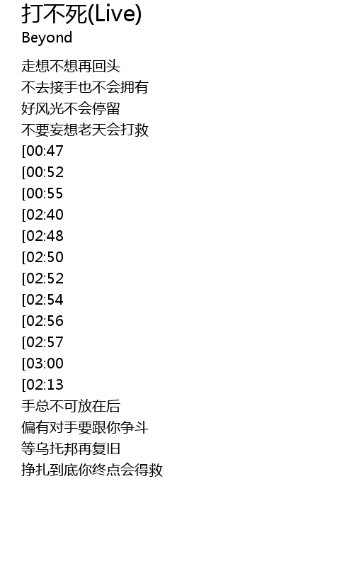 | [00:42] | bú yào wàng xiǎng lǎo tiān huì dǎ jiù |