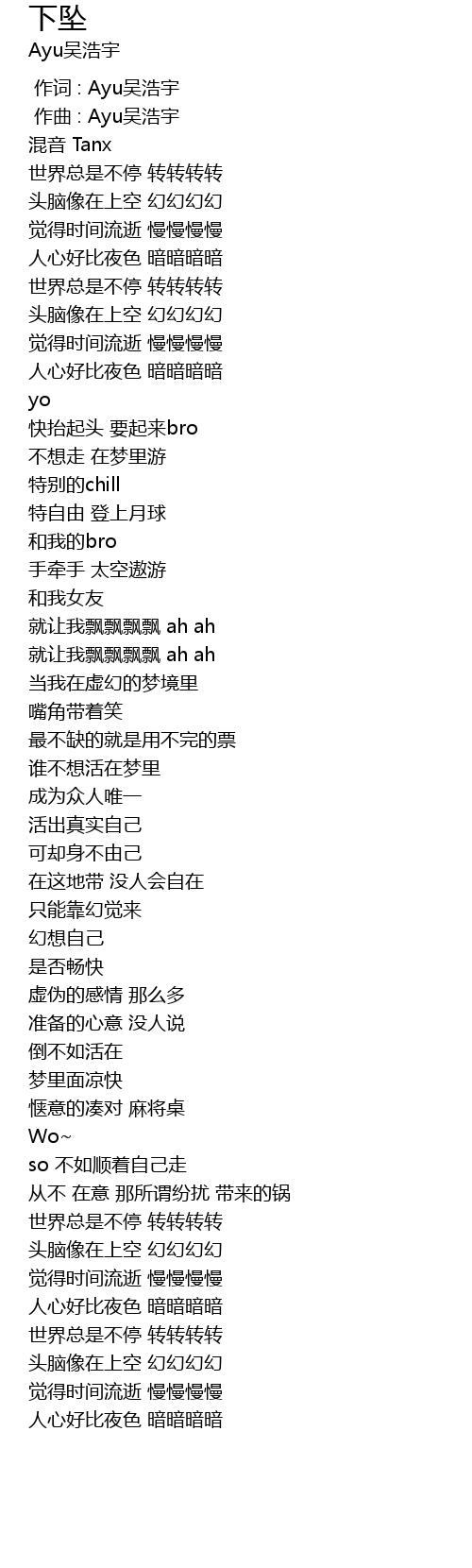 | [00:00.00] | 作词 : Ayu吴浩宇 |