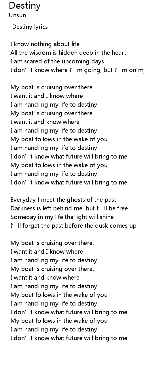 | Destiny lyrics | |