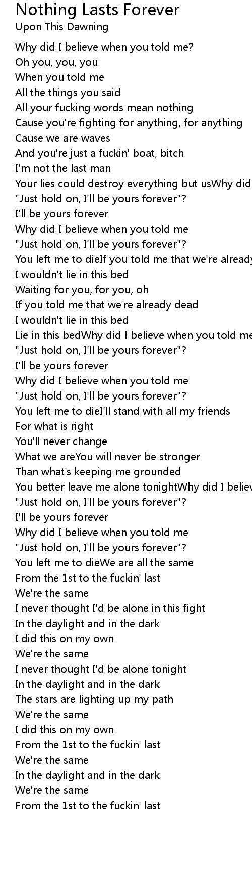 Your lies could destroy everything but usWhy did I believe when you told me |