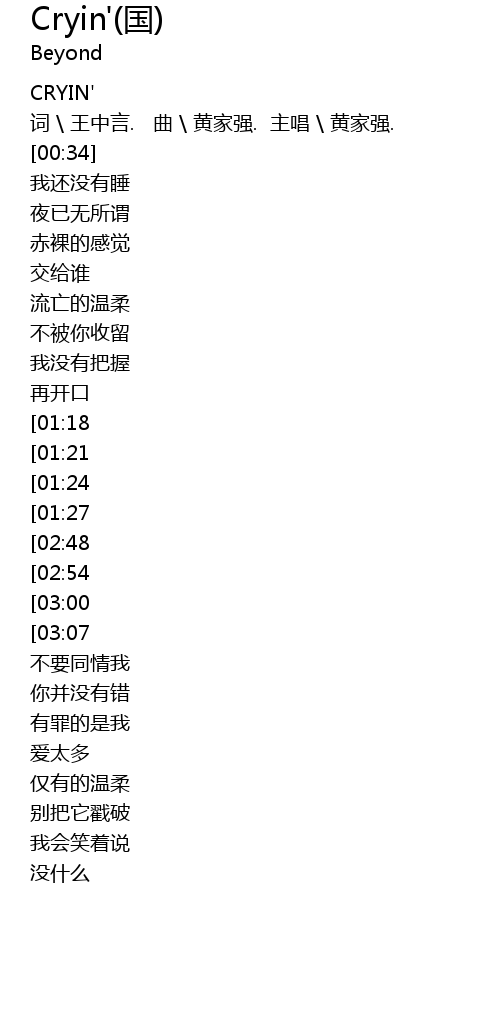 | [00:17] | 词 \ 王中言. 曲 \ 黄家强. 主唱 \ 黄家强. |