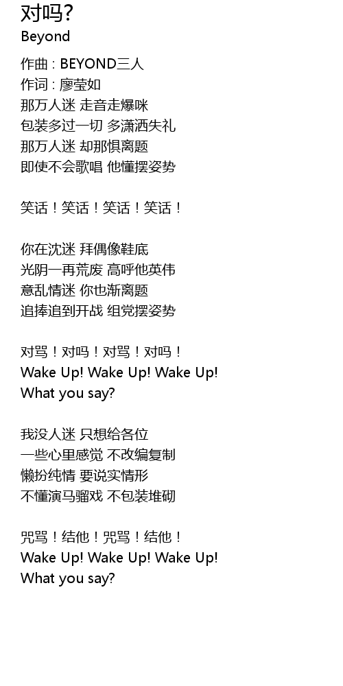 | 作曲 : BEYOND三人 | |