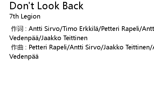 | [00:00.00-1] | zuò cí : Antti Sirvo Timo Erkkil Petteri Rapeli Antti Vedenp Jaakko Teittinen |