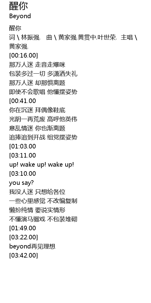 | [00:00.00] | 醒你 |