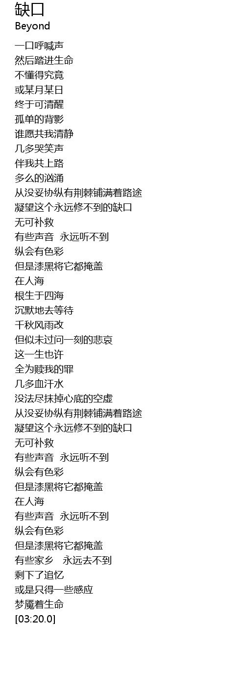 | [01:59.0] | níng wàng zhè gè yǒng yuǎn xiū bú dào de quē kǒu |