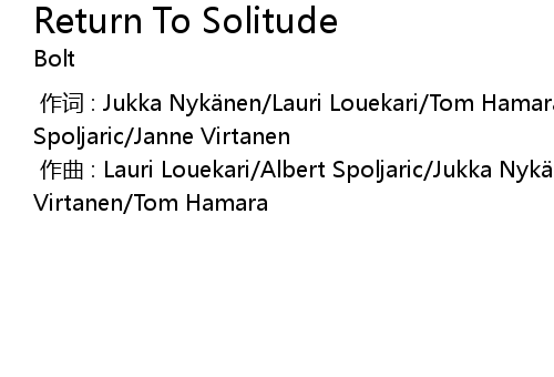 | [00:00.00-1] | 作词 : Jukka Nykänen/Lauri Louekari/Tom Hamara/Albert Spoljaric/Janne Virtanen |