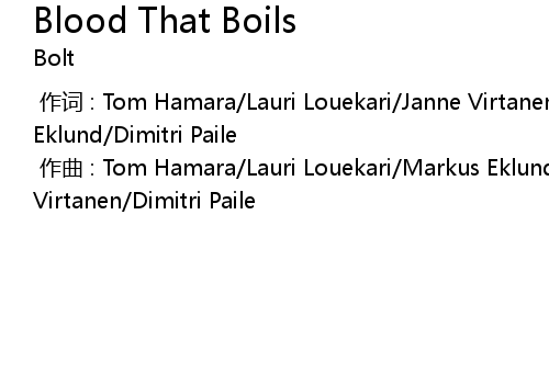 | [00:00.00-1] | 作词 : Tom Hamara/Lauri Louekari/Janne Virtanen/Markus Eklund/Dimitri Paile |