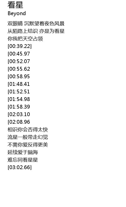 | [01:42.48][00:58.95] | hoo...难忘同看星星 |