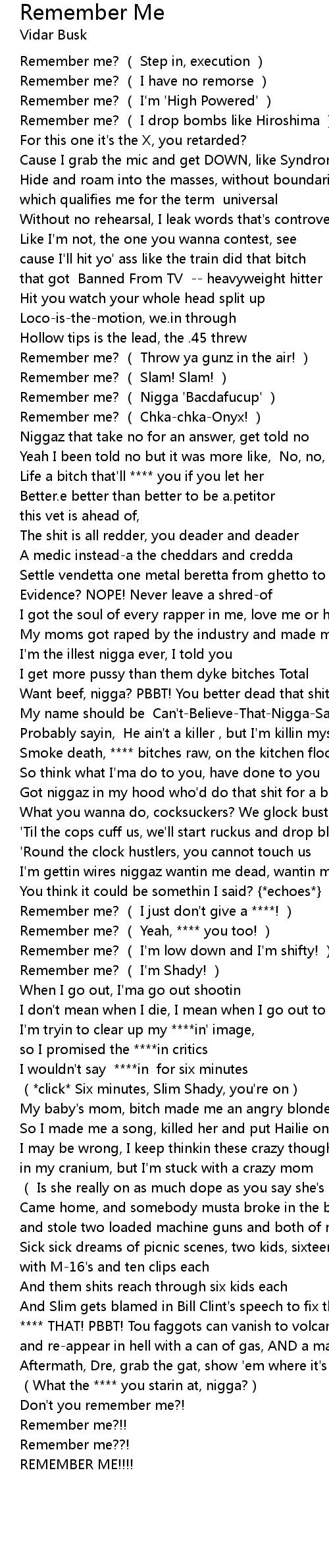 | [01:55.25] | My name should be Can' tBelieveThatNiggaSaidThatShit |