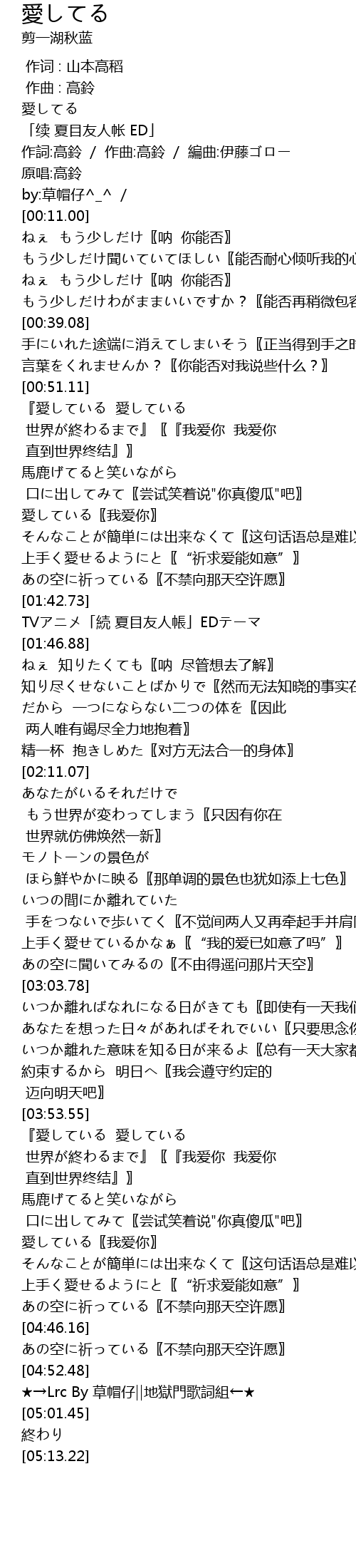| [00:51.68] | 『愛している 愛している 世界が終わるまで』〖『我爱你 我爱你 直到世界终结』〗 |
