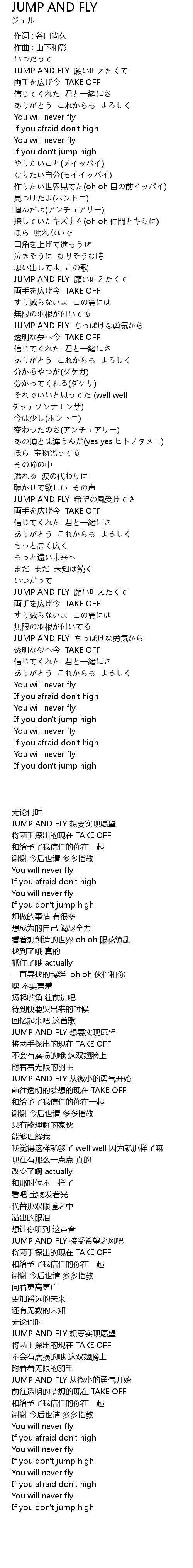 | [03:05.91] | JUMP AND FLY yuàn yè |