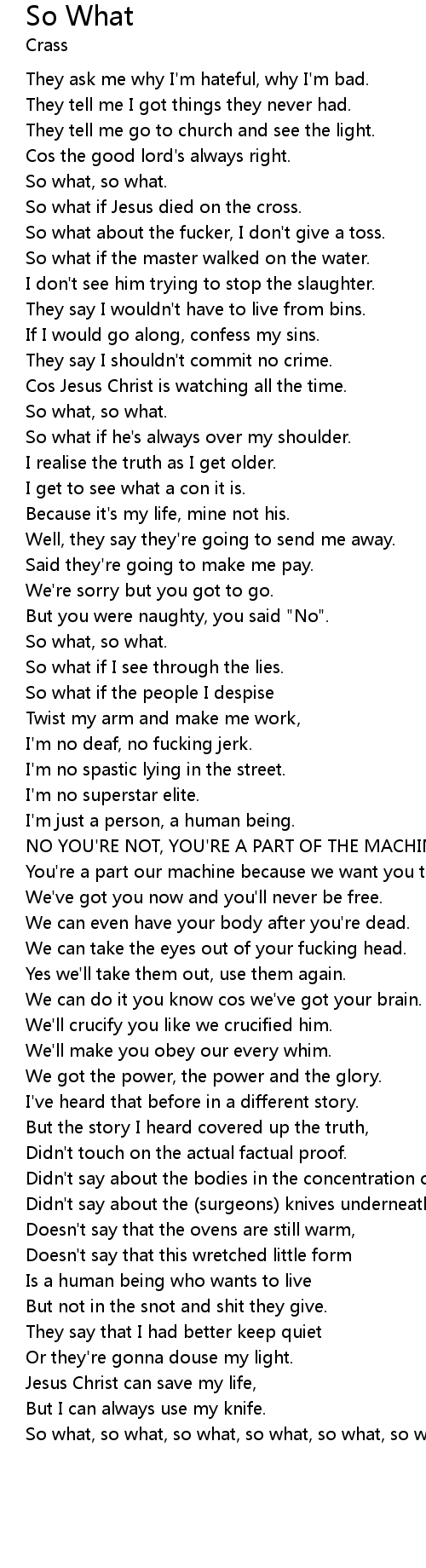So what, so what, so what, so what, so what, so what, so what, SO WHAT. |