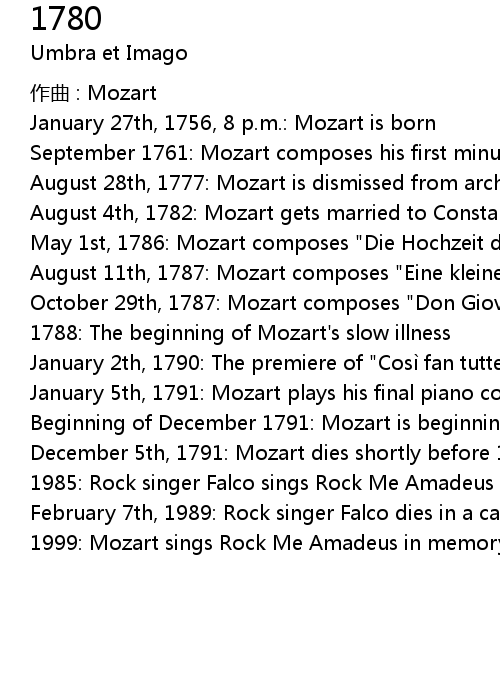 | May 1st, 1786: Mozart composes "Die Hochzeit des Figaro" | |