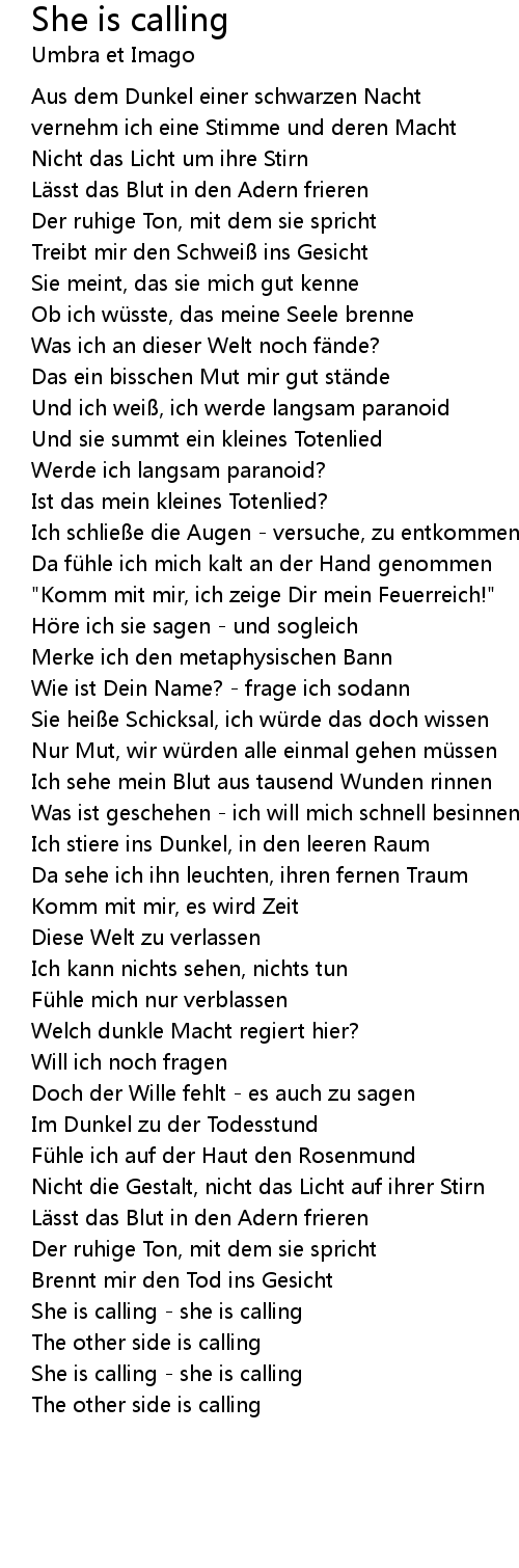 | Da fü hle ich mich kalt an der Hand genommen | |