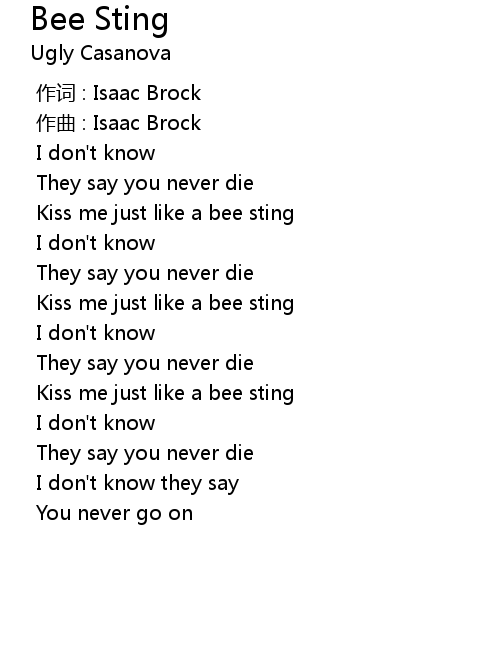 | 歌曲 | Bee Sting |