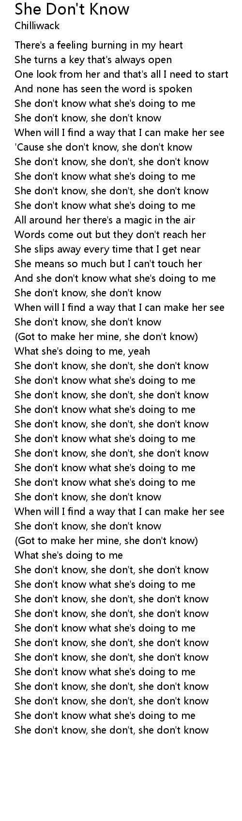 She don't know, she don't, she don't know |