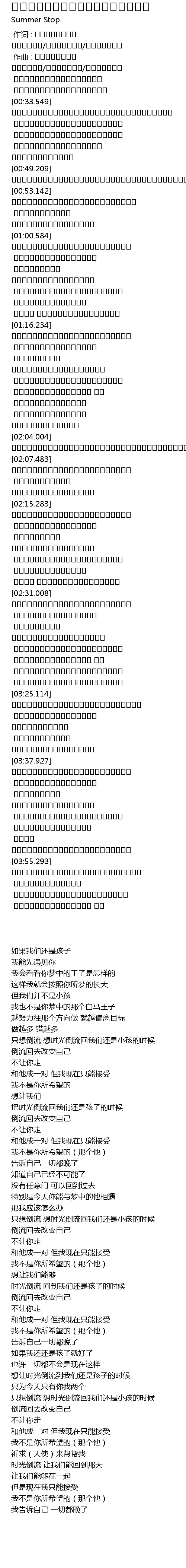 | [03:33.516] | 只想倒流 想时光倒流回我们还是小孩的时候 |
