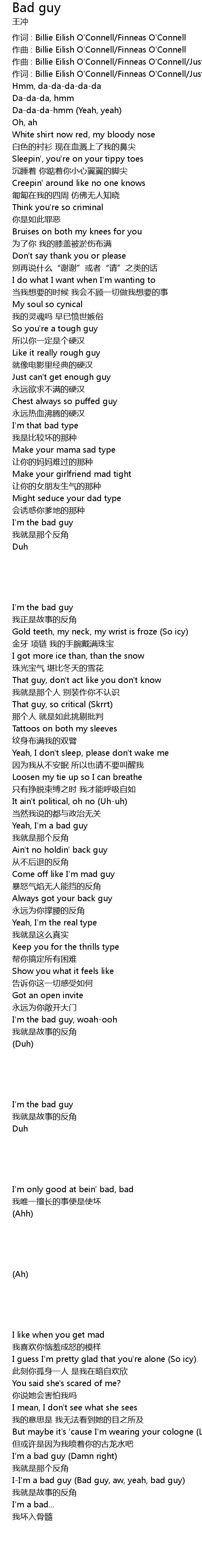 | 作词 : Billie Eilish O'Connell/Finneas O'Connell | |