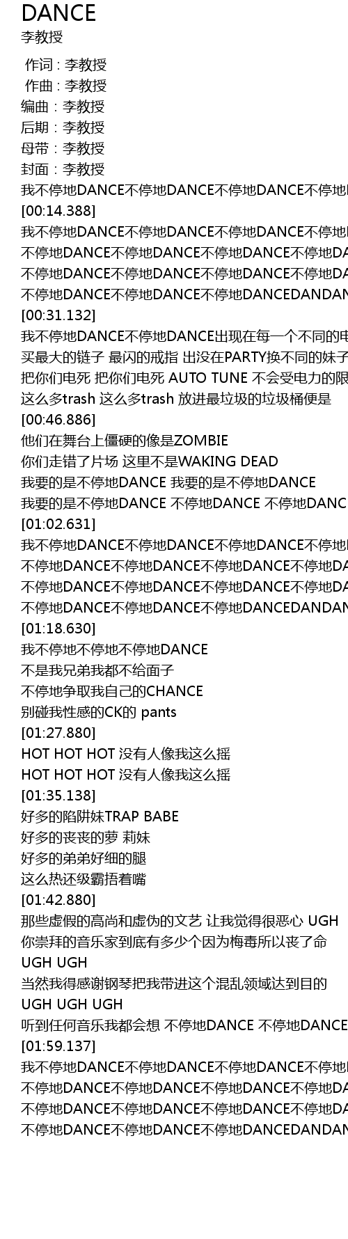 | [02:00.390] | wo bu ting di DANCE bu ting di DANCE bu ting di DANCE bu ting di DANCE |