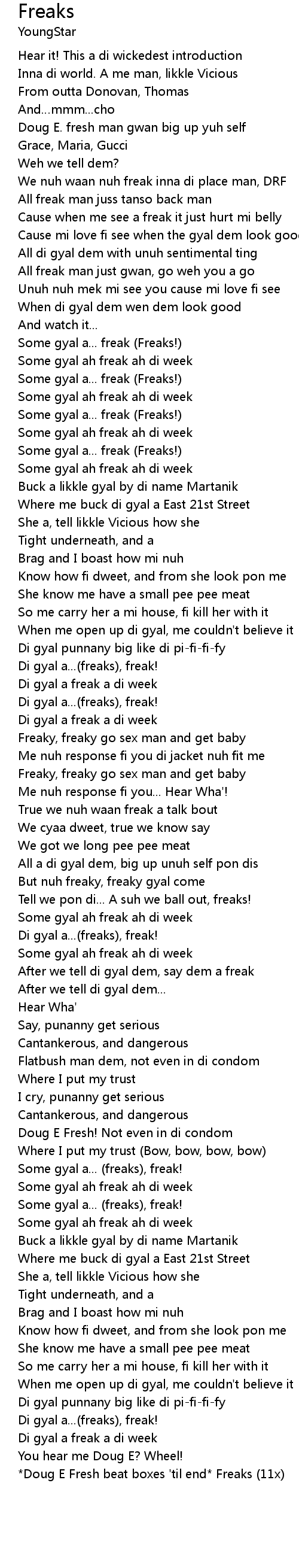 | [00:59.320] | Di gyal a... freaks, freak! |