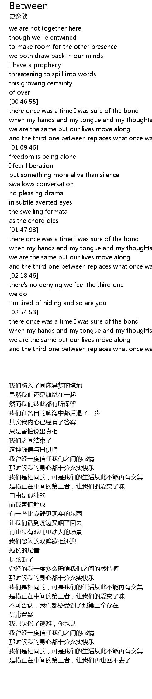and the third one between replaces what once was love |