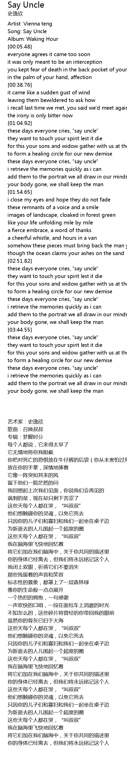 Song: Say Uncle |
